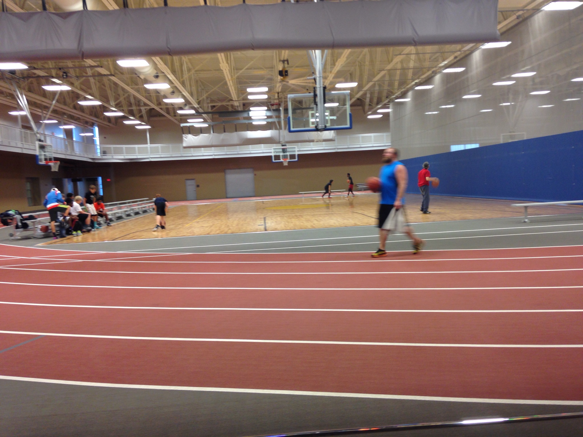 A 2 story indoor track and basketball courts