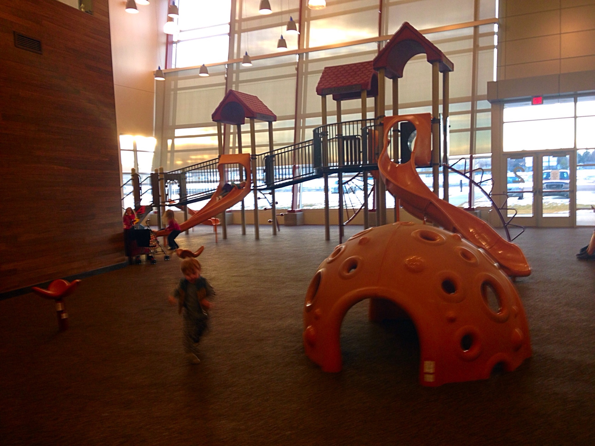 I am slowly learning their ways, the most successful being indoor activities. While neither “big city” within 1.5 hrs of us seems to have a fast food restaurant with a play place for the kiddos (my go-to toddler energy zapper last winter) both Williston and Dickinson do have kickin rec centers.