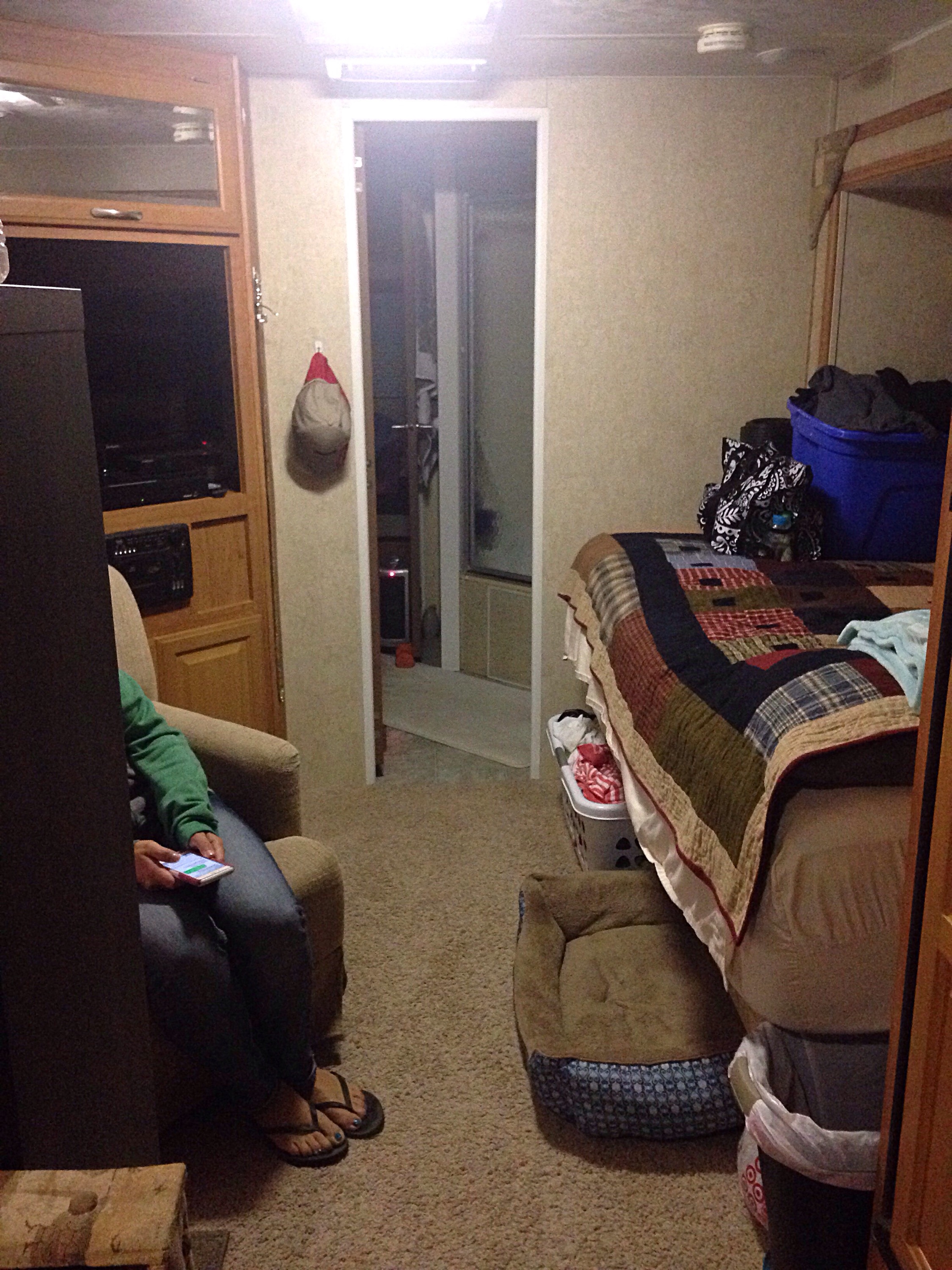 Turning around from the kitchen here is your view with Erin and her husband’s bed to your right.