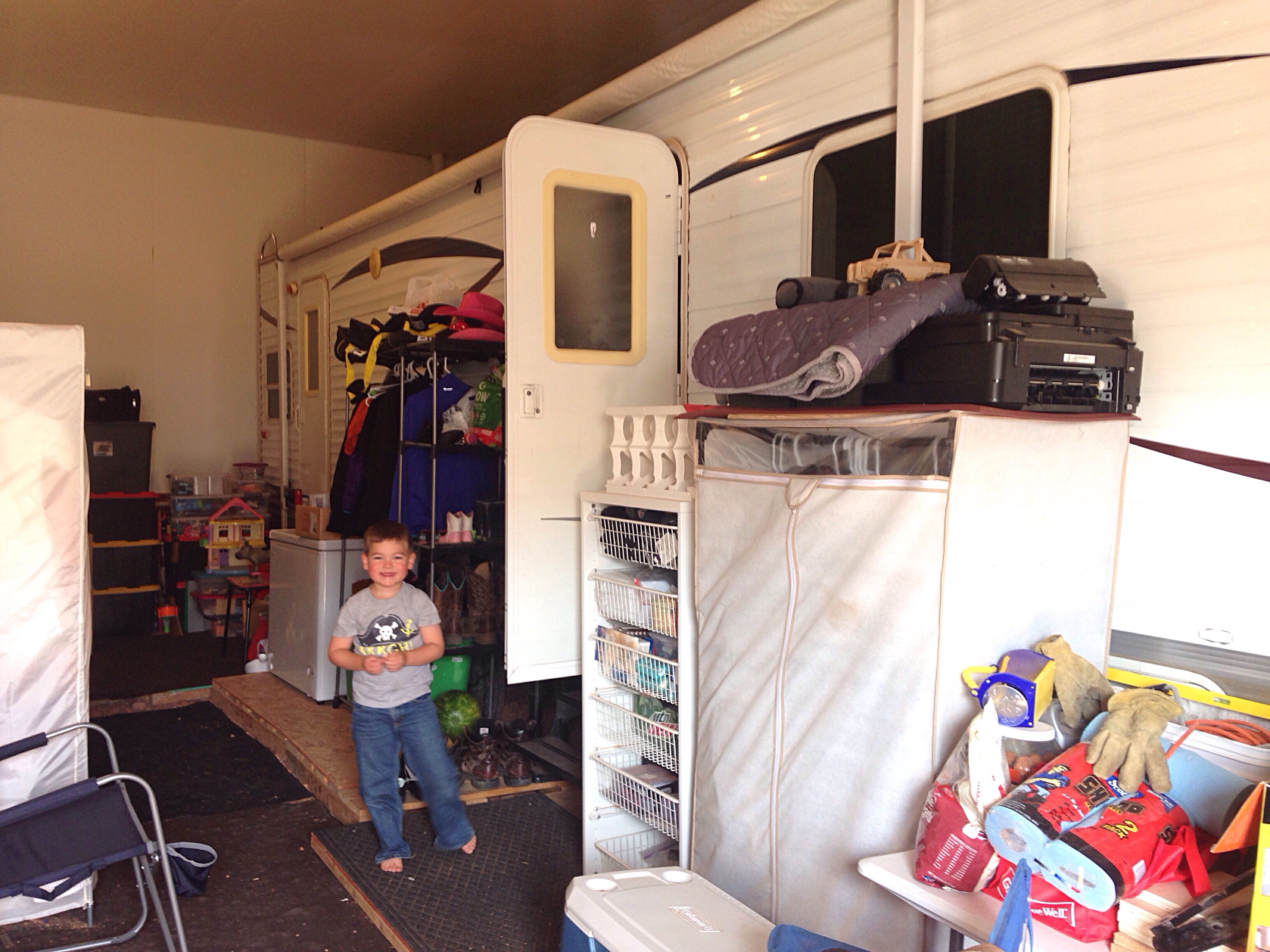If someone wants to pay under $2000/month and don’t have company housing, an RV is a very real option for living. Because of the severe winds and freezing cold temps in the winter, Erin and her family decided to go with a spot inside. Not only are the bays temperature controlled but people can also take advantage of the space around their RV for storage.