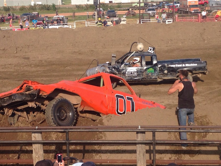 McKenzie County Fair Demolition Derby Published July 17, 2015 at 3000 × 2250 in McKenzie County Fair: So You Think You Can Rodeo? Getting high centered at the Demolition Derby